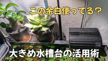 水槽はガラスの中だけじゃない。大きめ水槽台の背面にキッチンスタンドを設置し、アガベで“乾と水”の対比を演出。“水槽外レイアウト”を楽しむ新発想で、アクアリウム空間づくりのアイデアを紹介します。