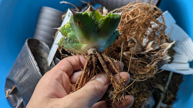 これらも植え替えていきましょう。結構すごい根っこですね。