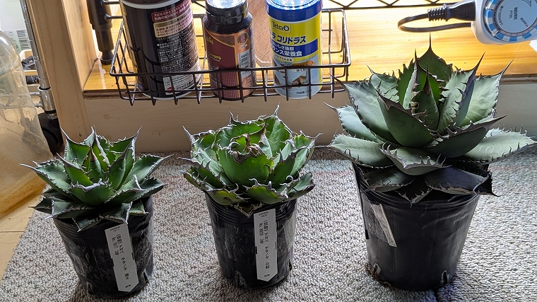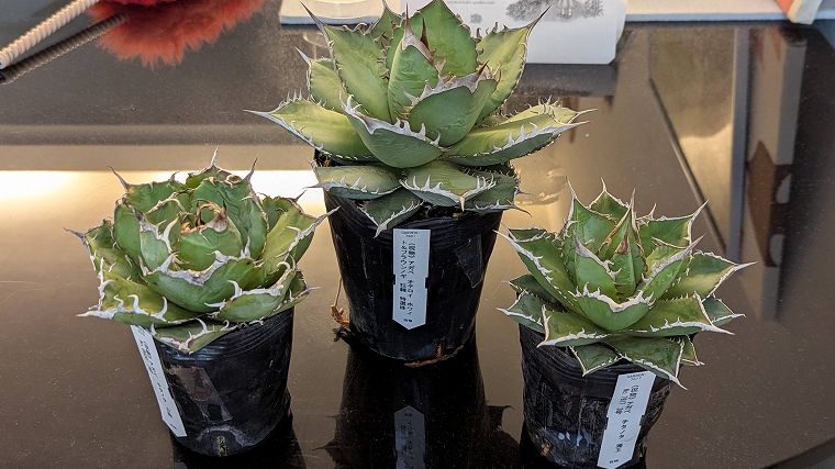 簡単に紹介すると、1個目「アガべ チタノタ 白鯨 3号」、