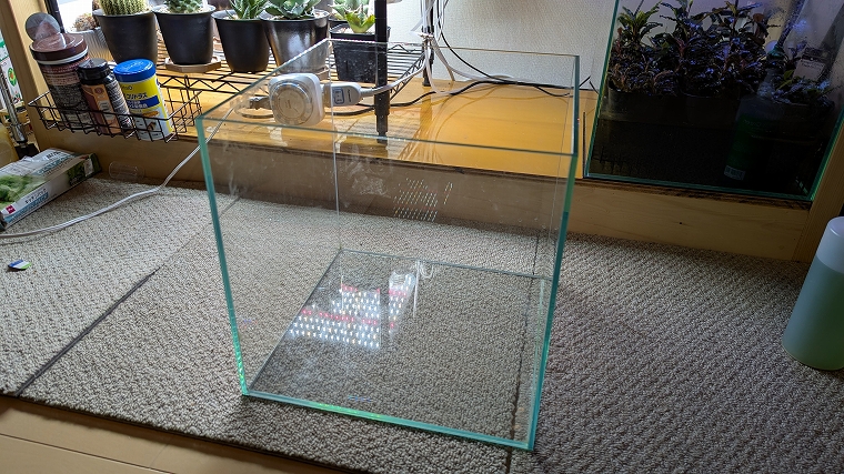 アクアリストなら1台はストックがあるはずの「30cmキューブ水槽」です。