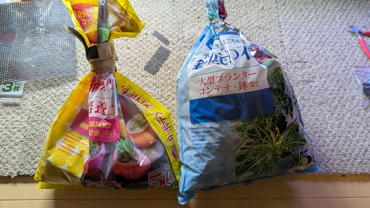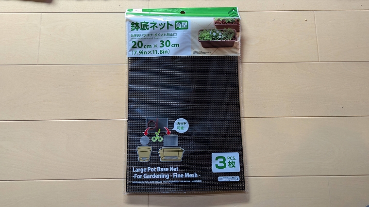鉢底ネットです。これらを使って水はけの良い環境を作りたいと思います。