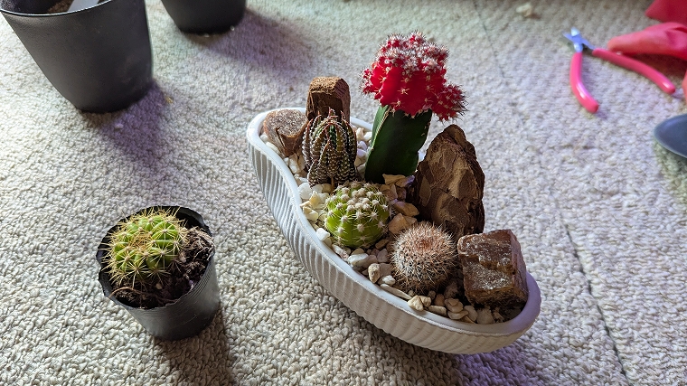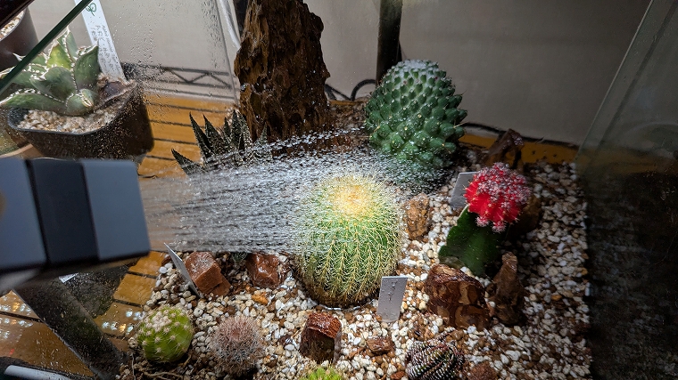 なお、サボテンには「強い光」「水はけの良い環境」「適度な風が当たる環境」が必要なので、これらを考慮した環境を目指したいと思います。