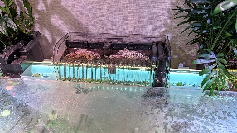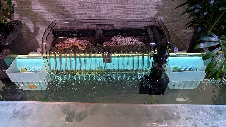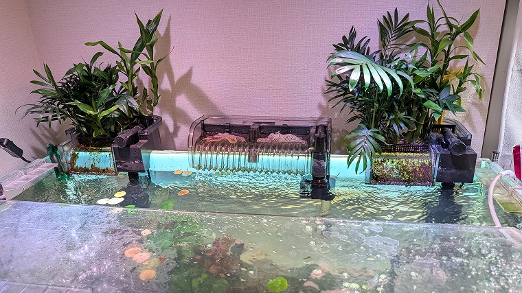 外掛式フィルターをサブフィルターとして3台並べることで、豪華なサブフィルター構成を組んでいました。