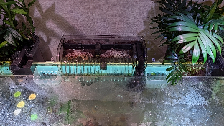 更に、このプラケースに観葉植物を追加することで、植物濾過の強化を行います。
