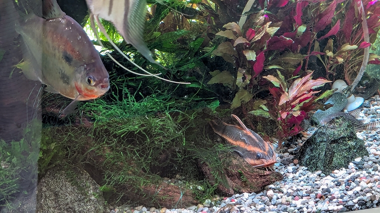 この位のサイズになると、クラウンローチとの餌の取り合いも負けなくなっています。