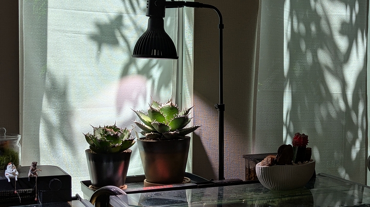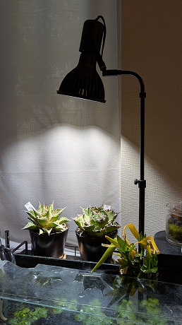 このLEDライトスタンドがあれば、アガベの方を照らすことも可能です。