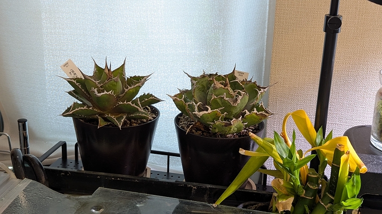 ということで、水槽周辺にアガベを並べてみるという試みでした。