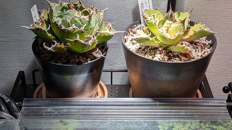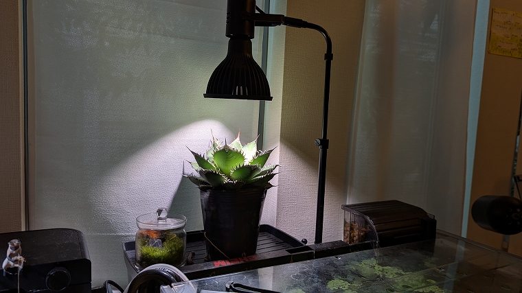 アガベを設置してみました。多少ぐらつきますが背面が壁なので倒れる心配はありません。