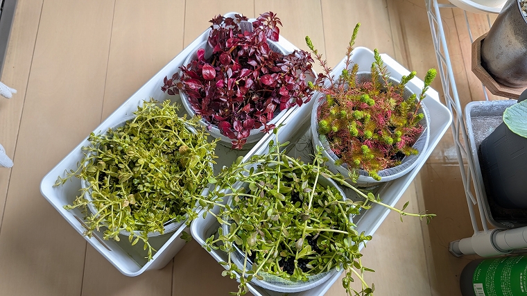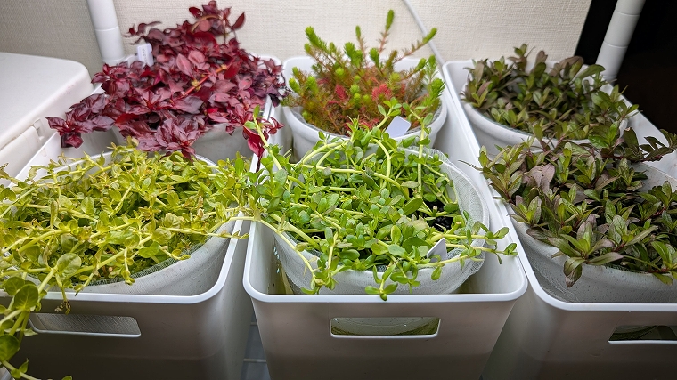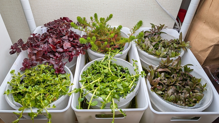 百均アイテムの簡易環境でも、育つものは育ちます。どちらかというと、約1か月で「思ってたよりだいぶ増えるなぁ、結局トリミング必要じゃん・・・」というくらいには生長します( ˘ω˘)スヤァ