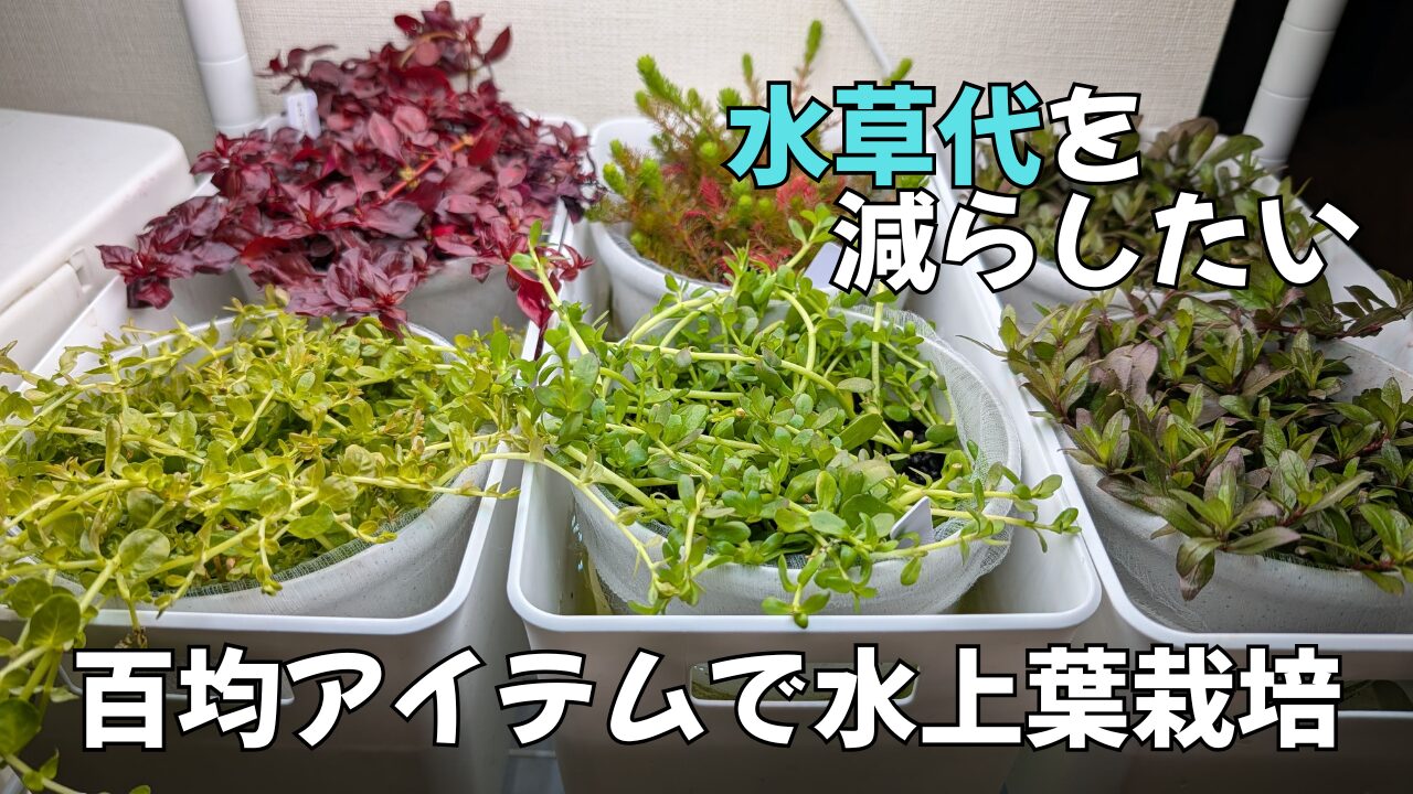 チャームで購入した水上葉の水草を、百均アイテムだけで水上管理してみましたが、思っていた以上に簡単でした。