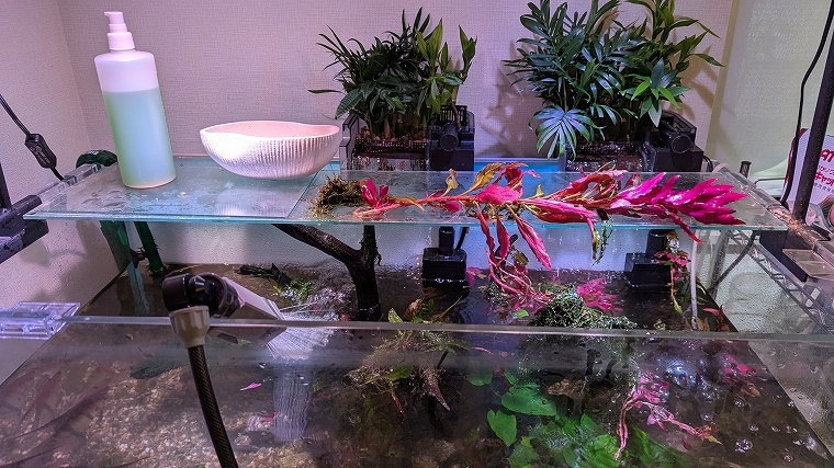 さて、過密飼育するうえで次の心配事といえば、濾過容量ですよね。次回は、フィルターの追加などについて検討していきたいと思います。