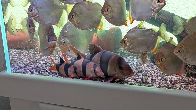 クラウンローチ達も不満顔? ちなみに、同じ店で同じサイズで購入し、5年目になるクラウンローチなんですが、体格の個体差が半端ないですw