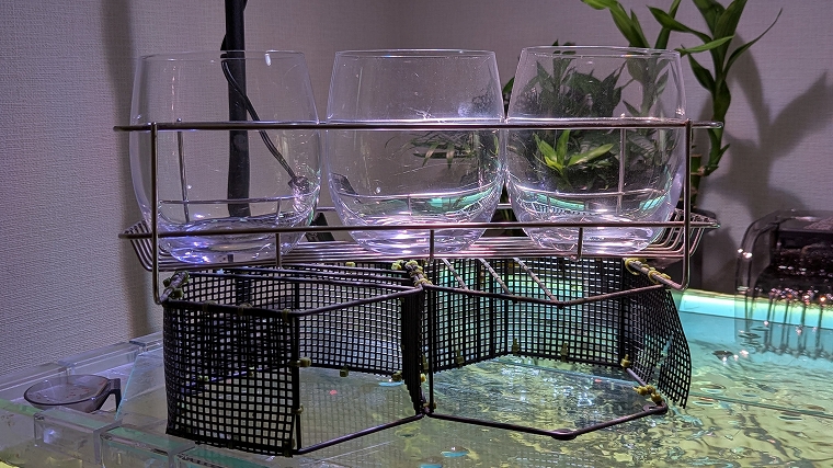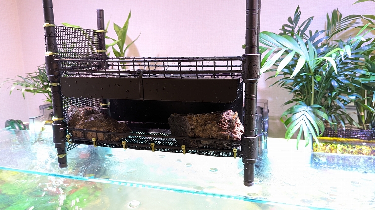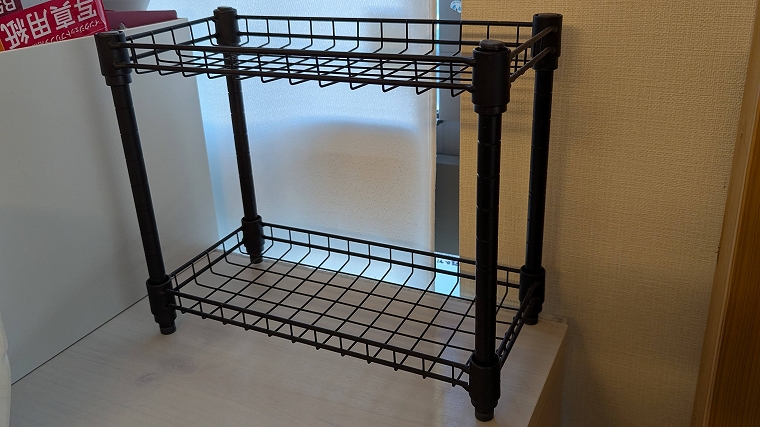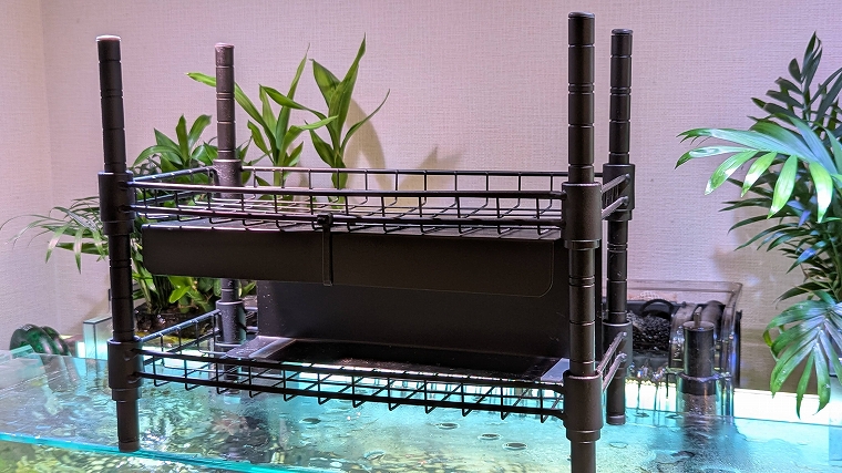 これもダイソーで買えちゃいます。「ジョイントラック」という商品ですので、気になる方は要チェックです。棚の横幅が30cmなので、60cm以上の水槽なら問題なく使えるでしょう。