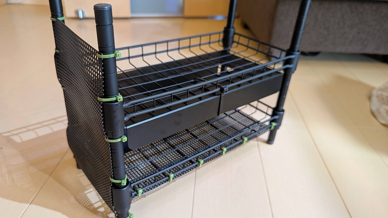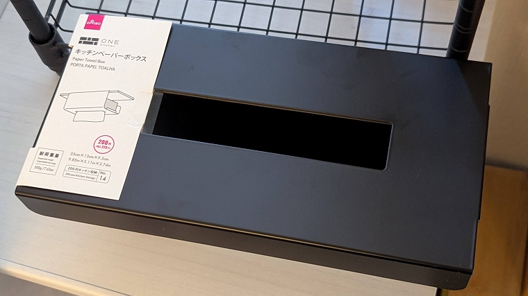 ラックだけだとシェルター感皆無なので、ここに「キッチンペーパーボックス」を組み合わせます。