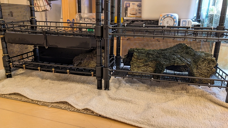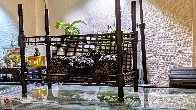 以前の記事で紹介した隠れ家です。問題は左の隠れ家で、グラスの中に汚れが溜まるし、隠れ家としても機能しないし、微妙な感じでした。