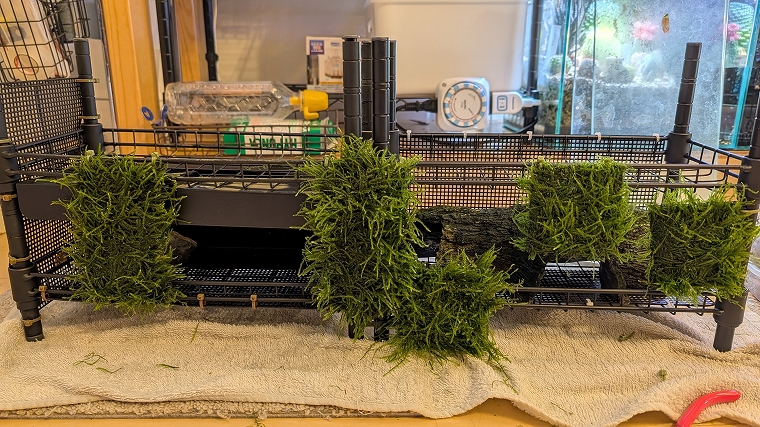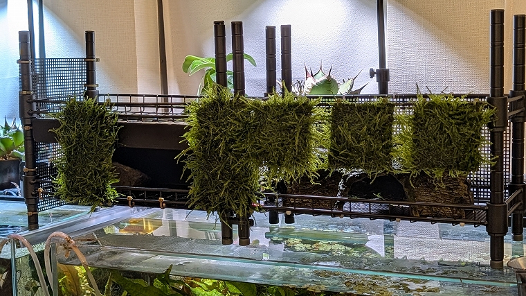 最終的にはこうなりました。下段に取り付ければ、コリドラスの隠れ家にもなりそうですしね。