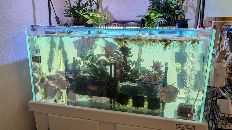 90cm水槽に投入してみましたが、程よいサイズ感です(´∀`*)ウフフ