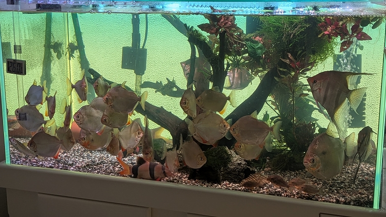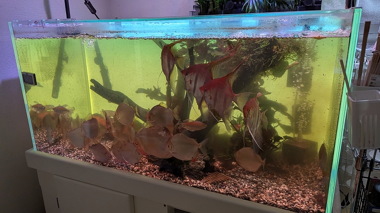 これが、「AT-75W」導入前の様子です。濾過不足なのか、若干、水が濁った状態です。