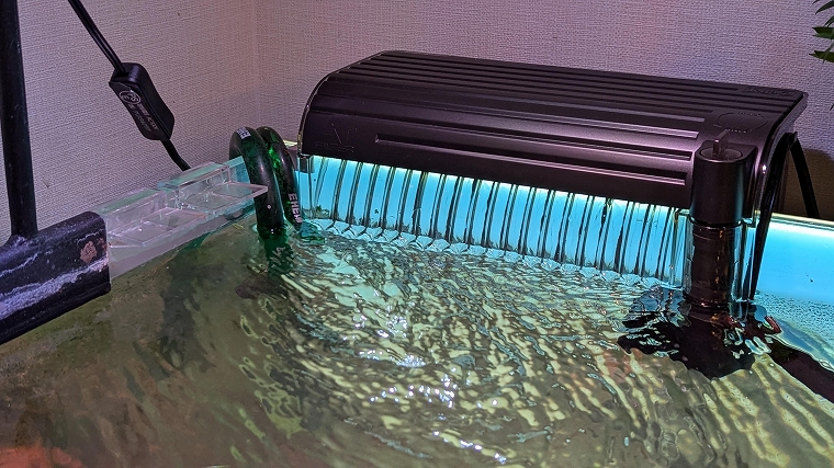 水槽に設置してスイッチオンすると、フィルター内が水で満たされていきます。