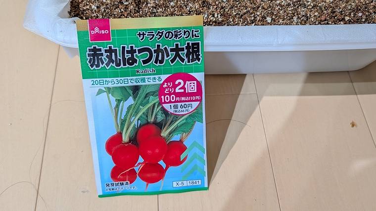 同じくダイソーの二十日大根を植えていきます。