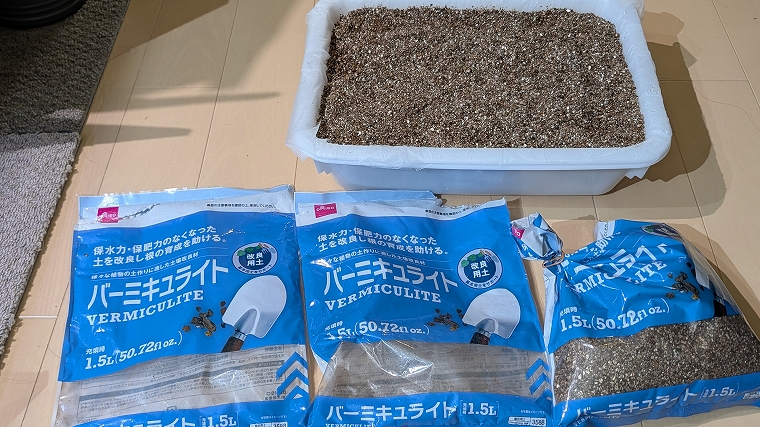 ちなみに、使ったバーミキュライトは2個半位です。