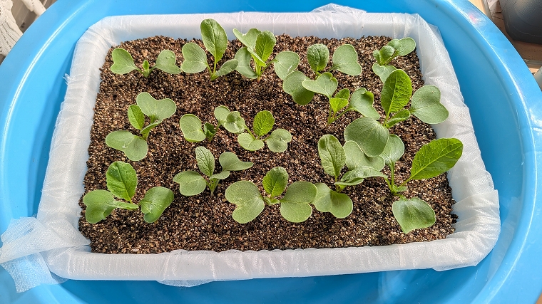 と、最近、植物育成にハマっているブログ管理人が軽いノリで始めた、リビングでの二十日大根栽培。