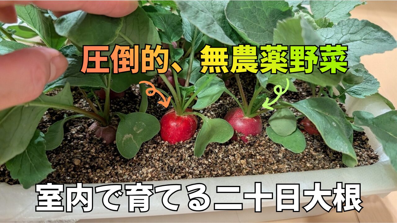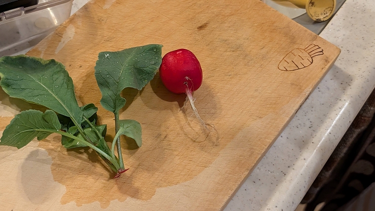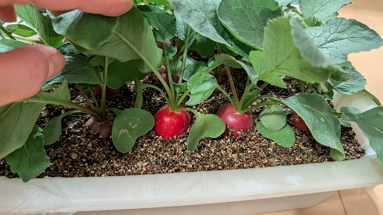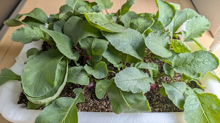 リビングでのLED栽培でも、二十日大根はしっかり育ち、無事に収穫まで楽しむことが出来ました。