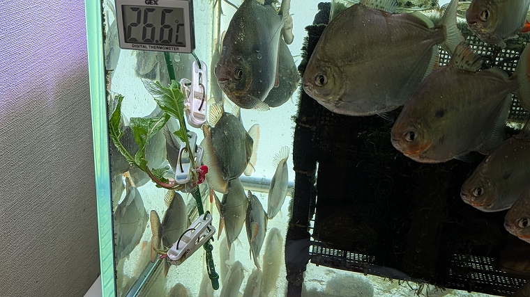 そして、葉っぱの部分は「メチニス」に与えてみることに。もともと草食魚なので食べてくれるでしょう。