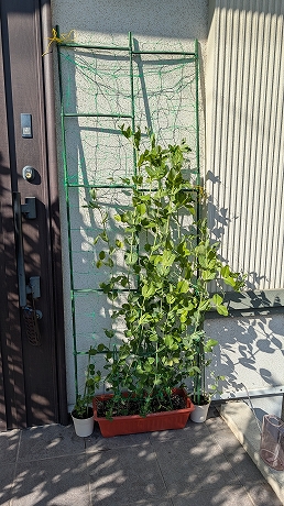 その甲斐あってか、スナップエンドウが実をつけ始めました(´∀`*)ウフフ